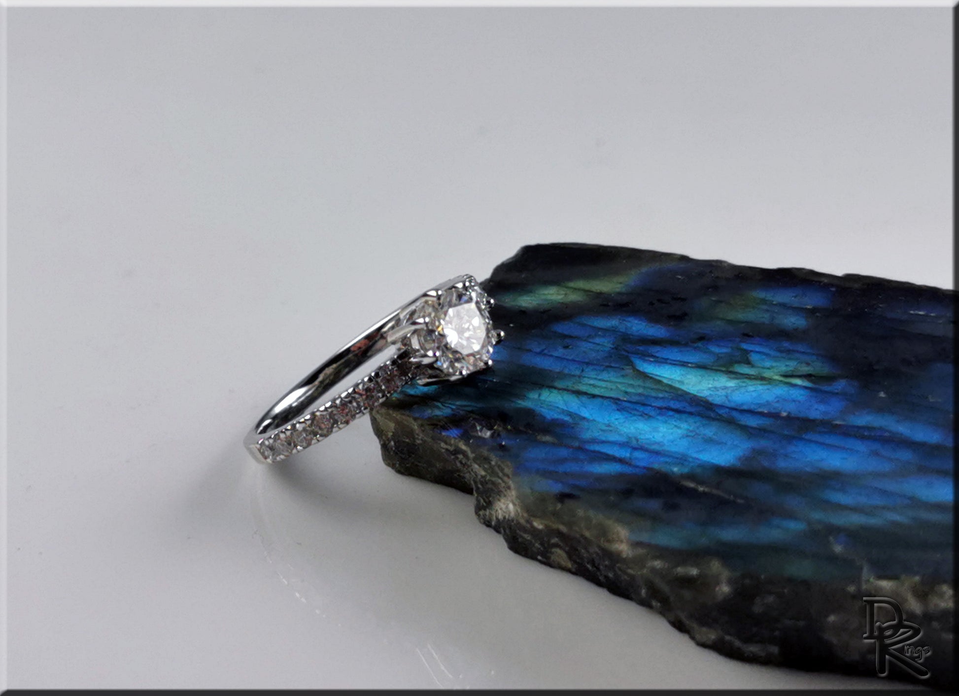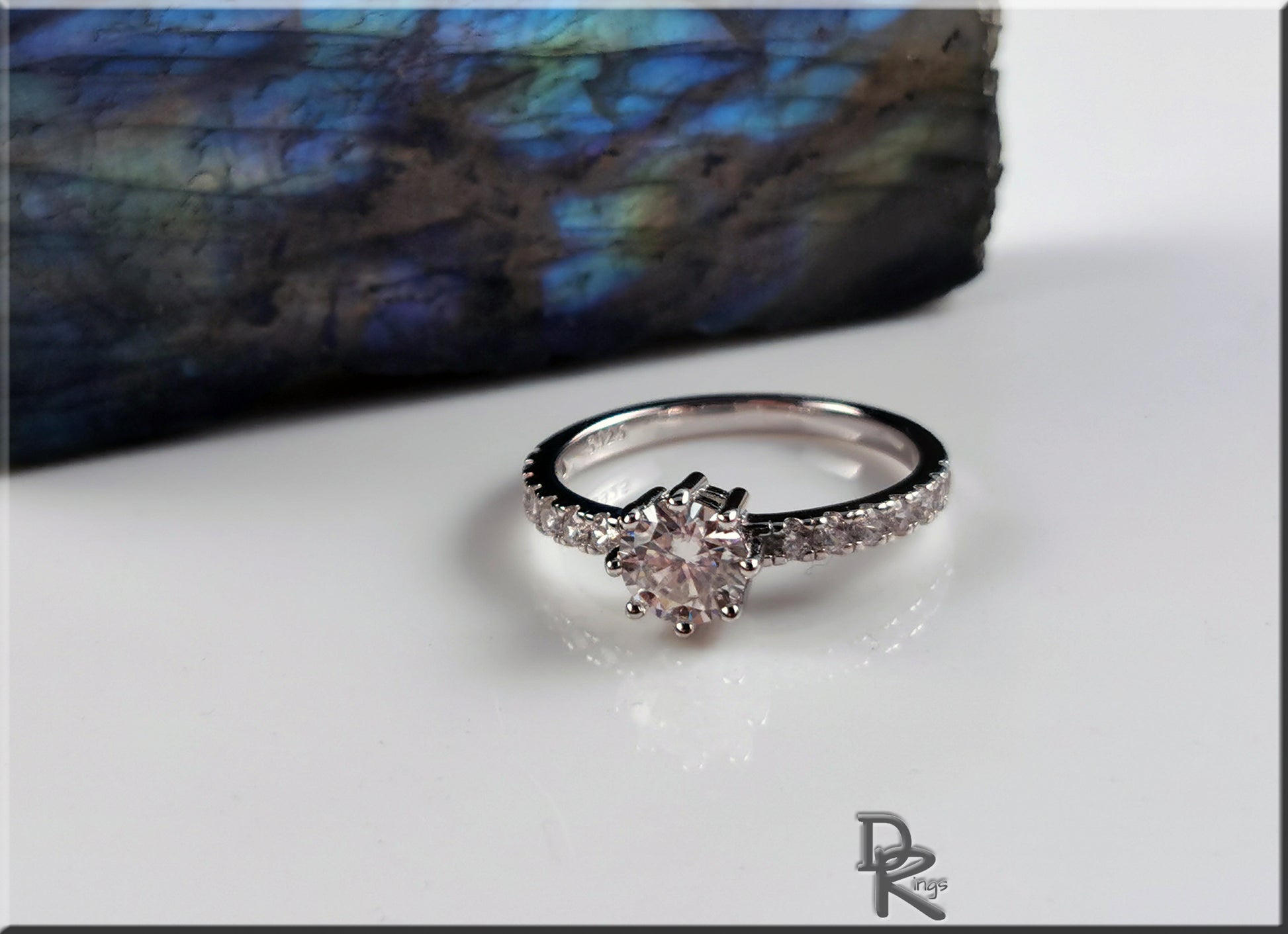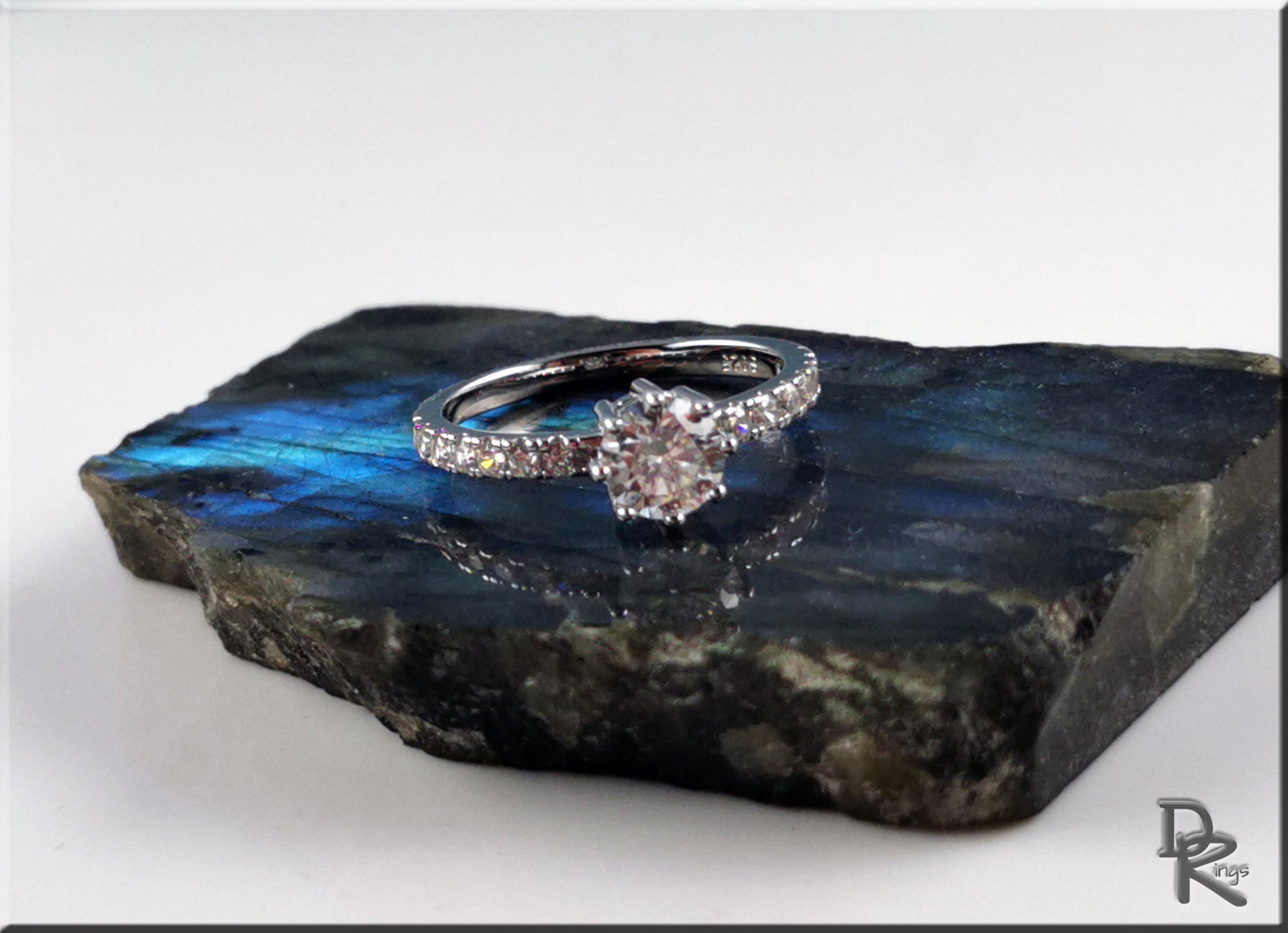 This beautiful Artisan ring is constructed of .925 Sterling Silver and certified 0.8 Carat Moissanite. US full and half ring sizes from 5 - 10 are available. Gem certificate will be provided.