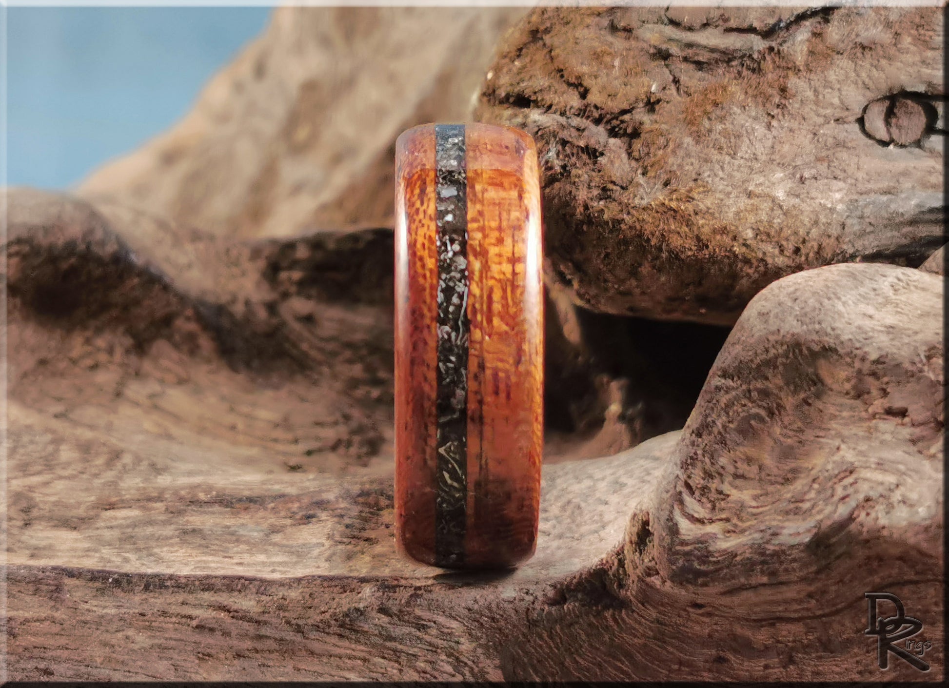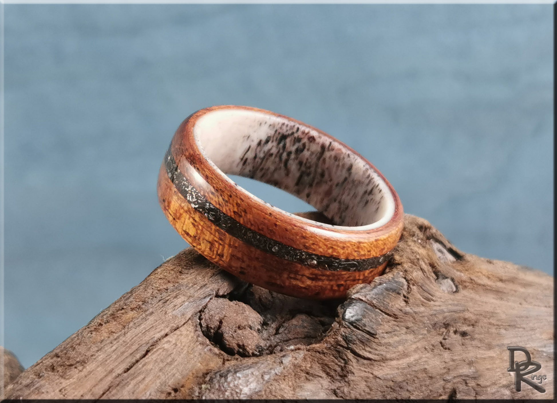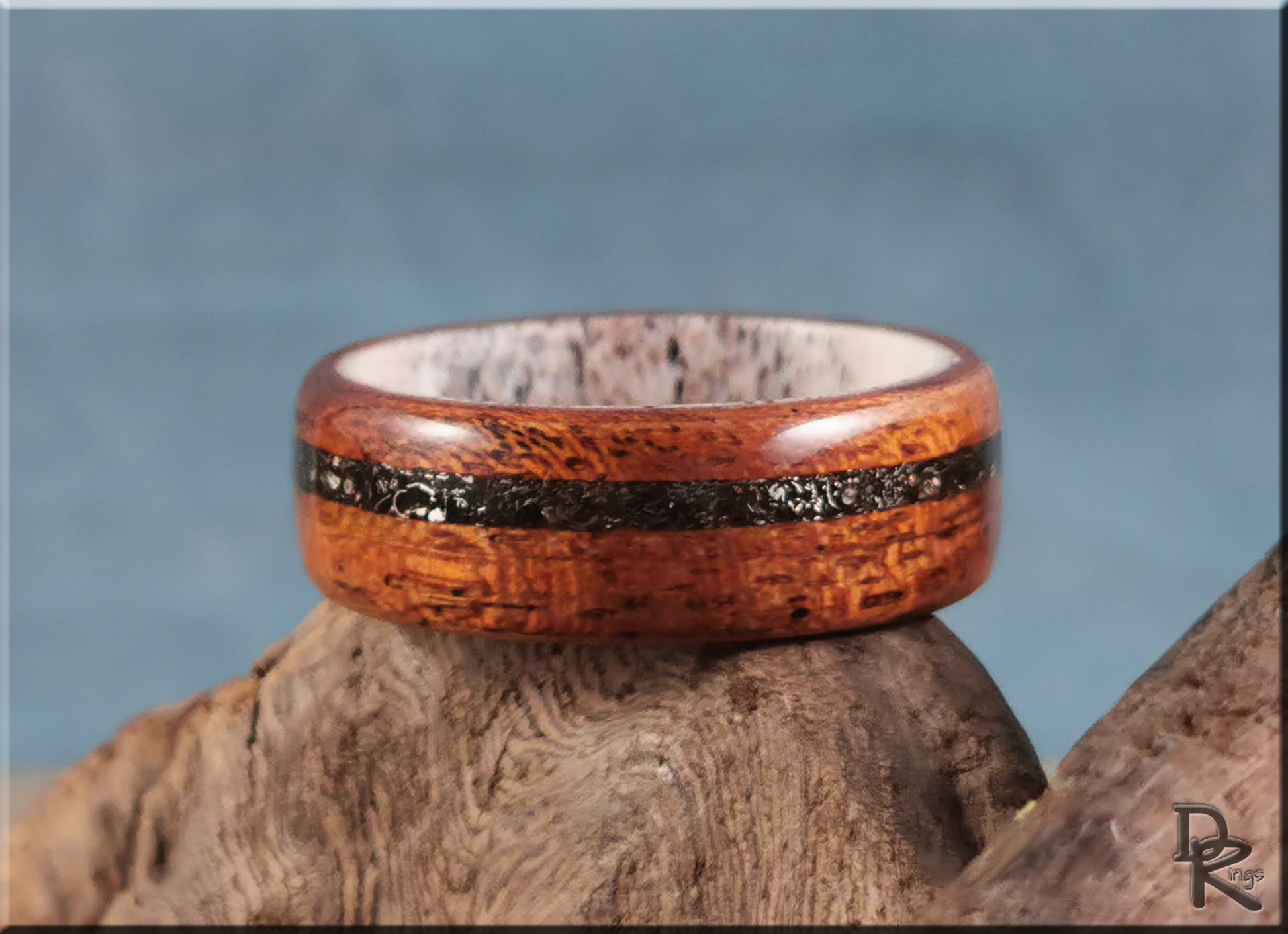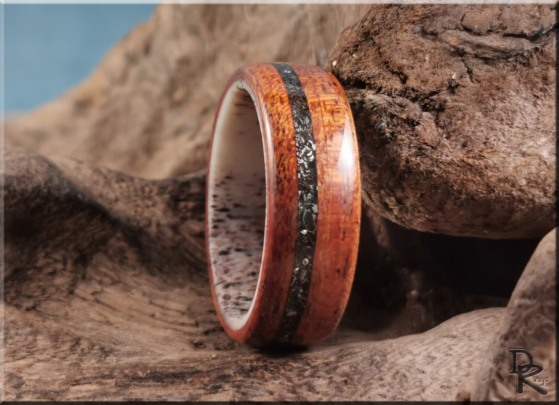 Bentwood Ring: Quartersawn Etimoe, offset Glorieta Mountain Meteorite inlay, Deer Antler core