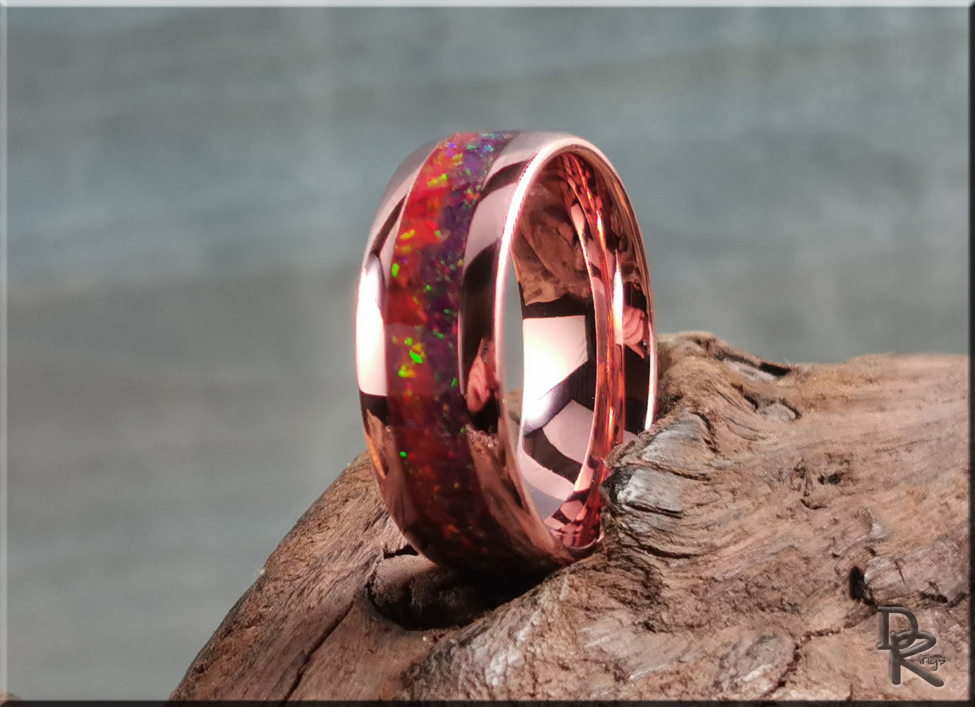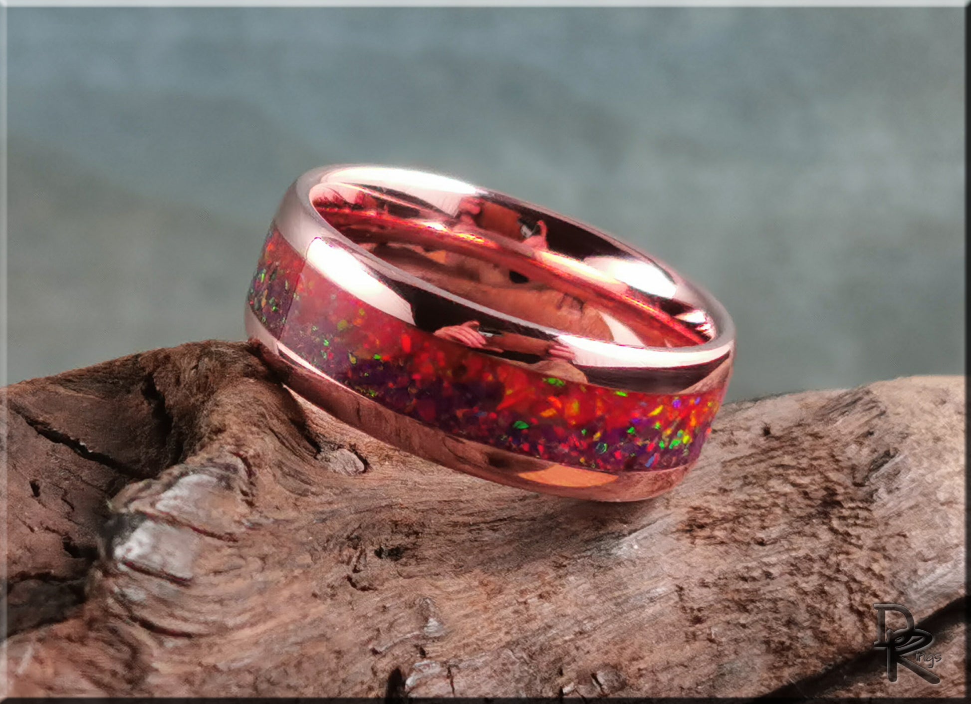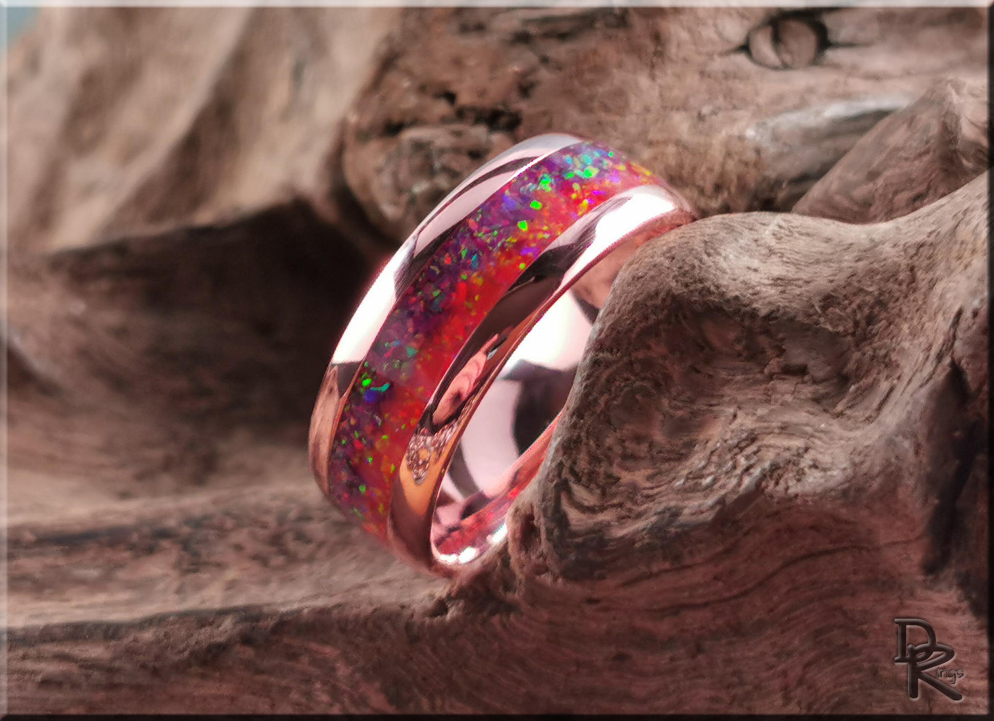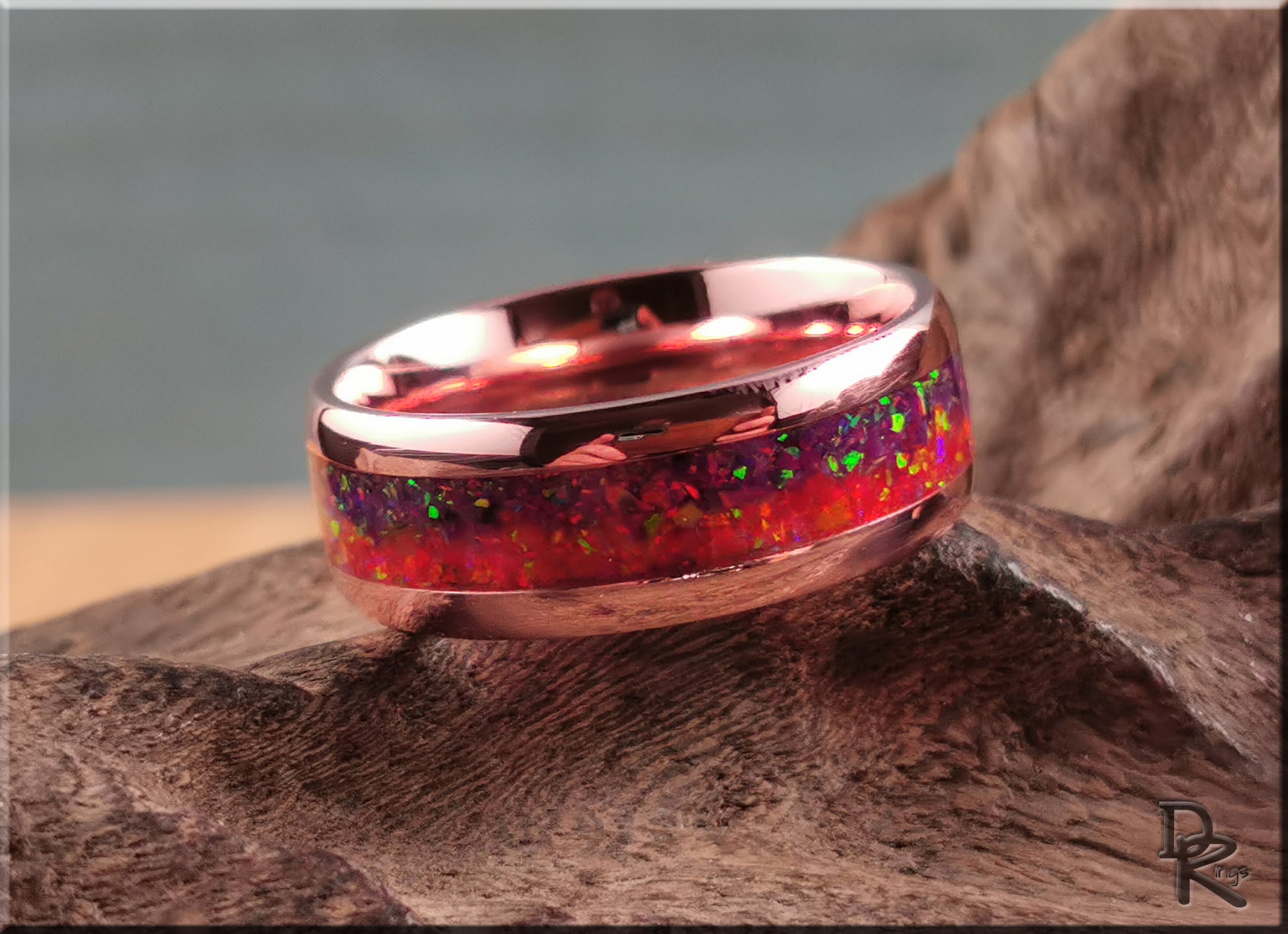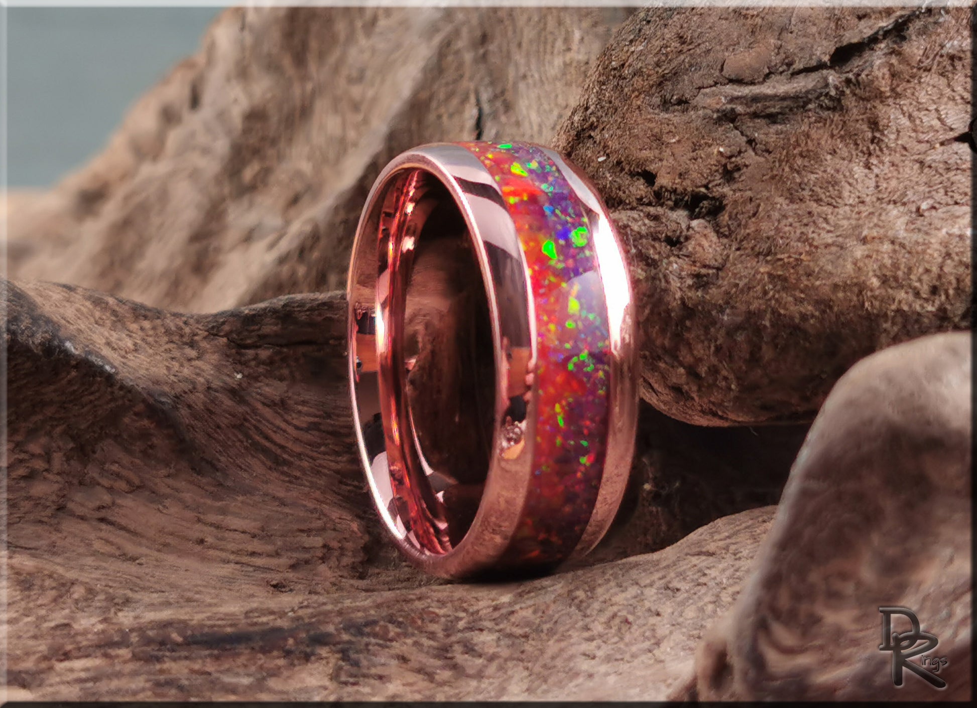 Tellurium Copper Ring with Blended Opal inlay, 8mm, 'Copper Sunset'