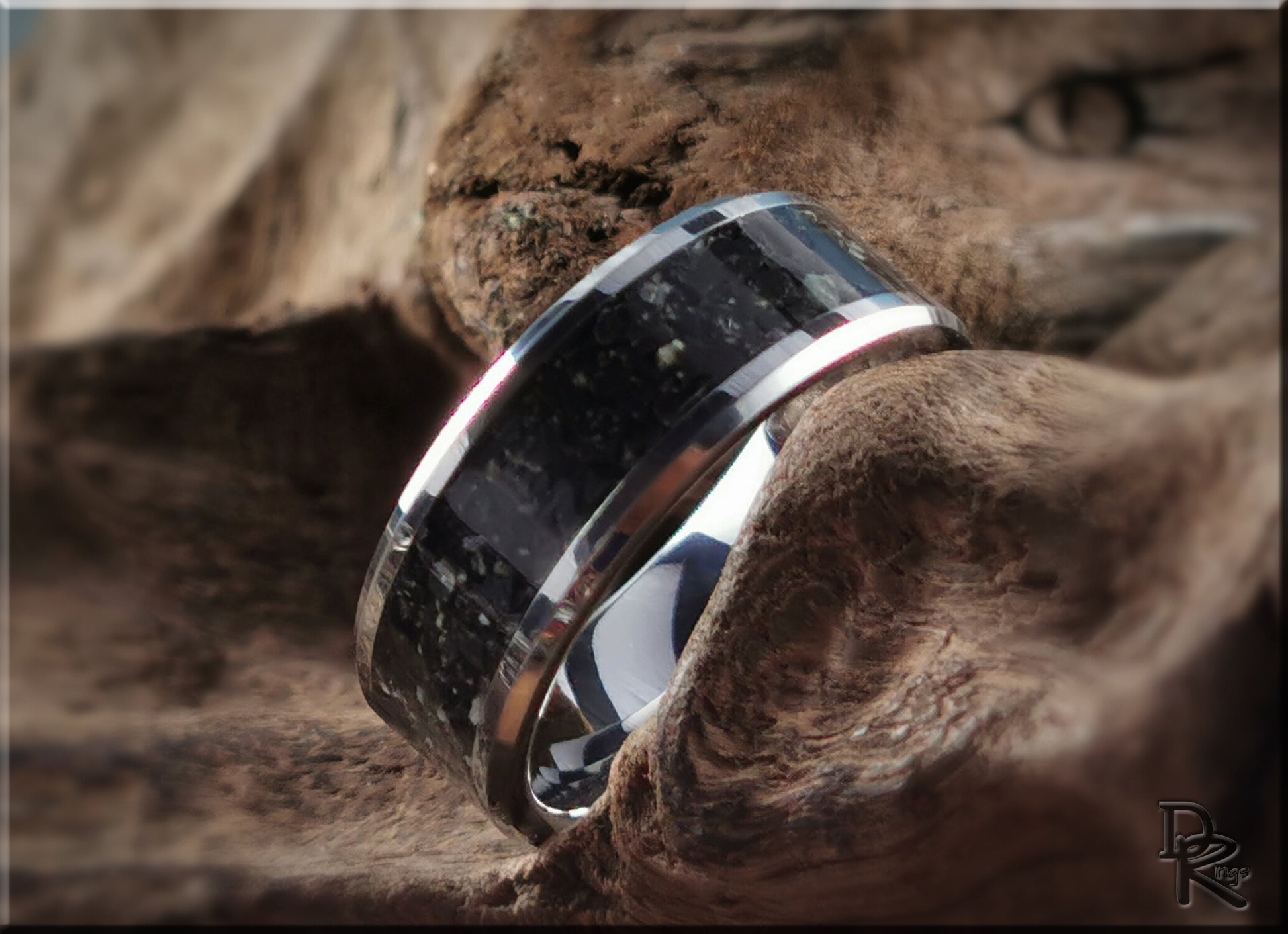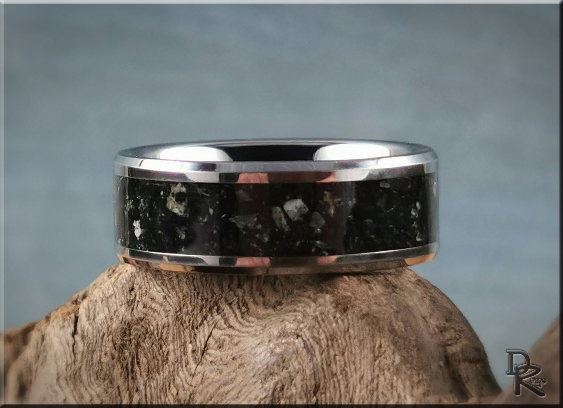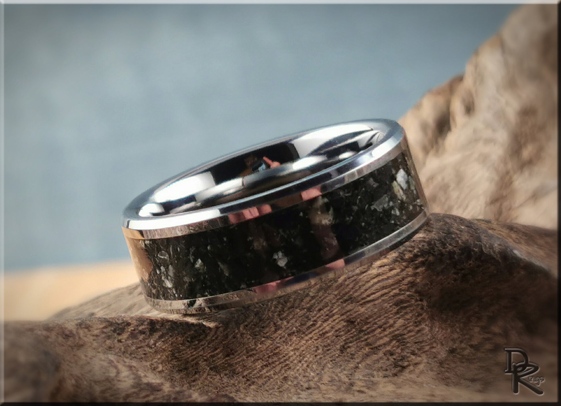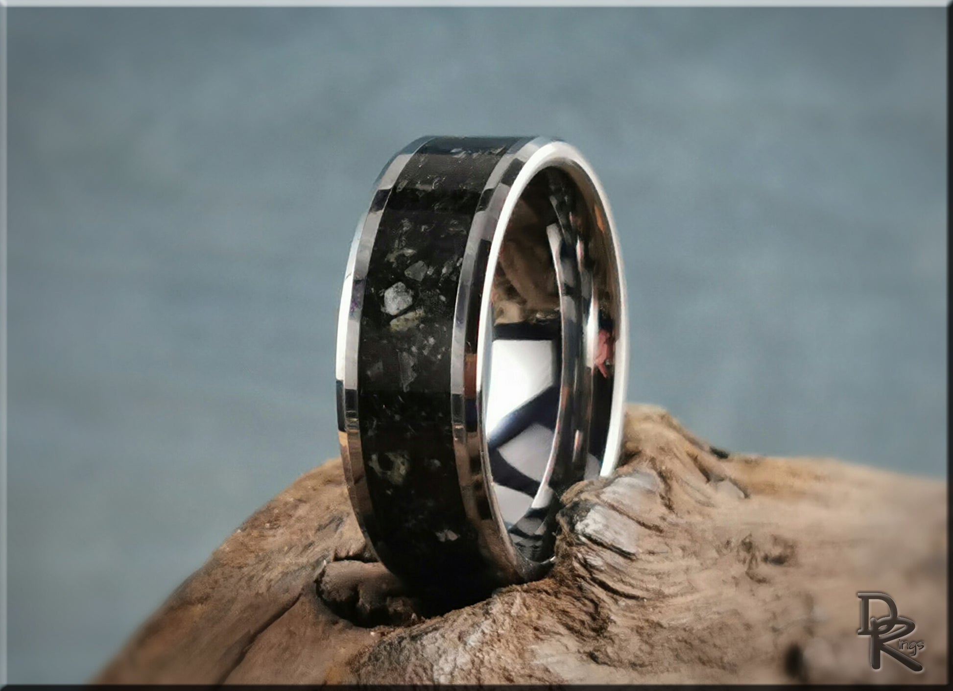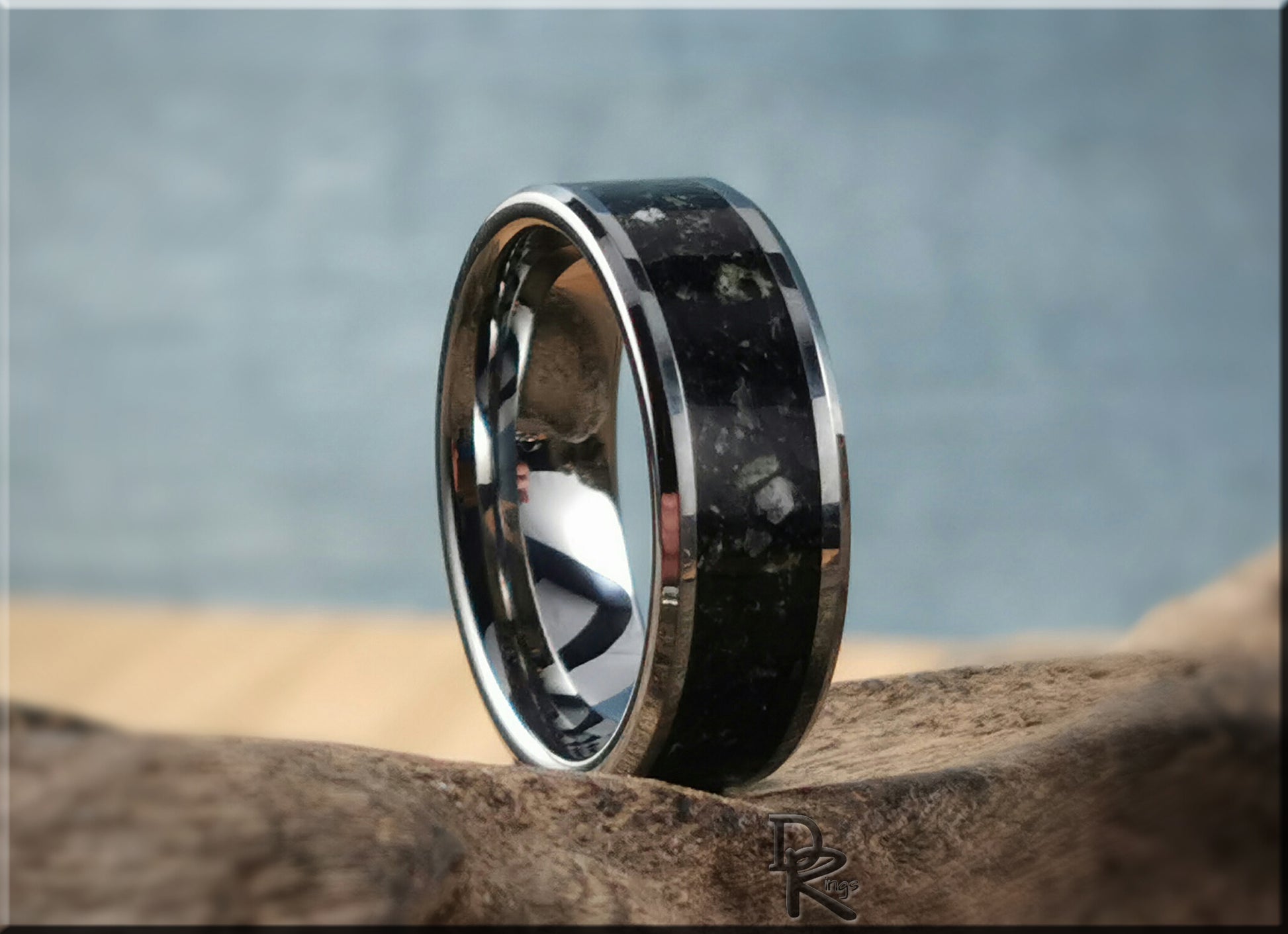 This is a beautiful, handcrafted Artisan ring made in my small shop in Ottawa, Ontario, in Canada. This ring is offered with a stunning Marquina Marble stone inlay in a tungsten carbide comfort fit core. US full and half ring sizes from 5 - 13 are available, in widths of 4mm, 6mm or 8mm. If you require a custom order at a different size, please send me a message and I will do my best to accommodate.